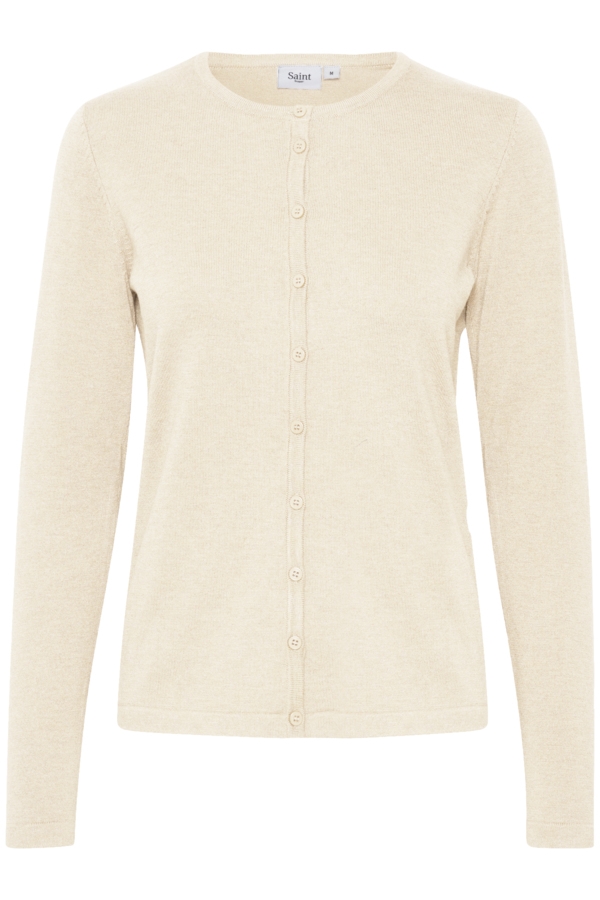 Super fin Saint Tropez Mila cardigan, med rund hals og små knapper. Helt enkel og super anvendelig. Lys, lækker og helt neutral.