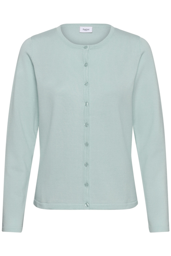 Super fin klassisk Saint Tropez Mila cardigan, med rund hals og små knapper. Helt enkel og super anvendelig. Skøn pastel grøn farve der passer til meget.