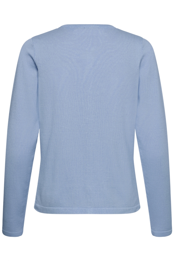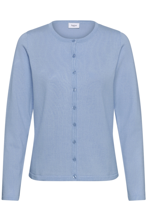 Super fin klassisk Saint Tropez Mila cardigan, med rund hals og små knapper. Helt enkel og super anvendelig. Skøn blå farve der passer til meget.