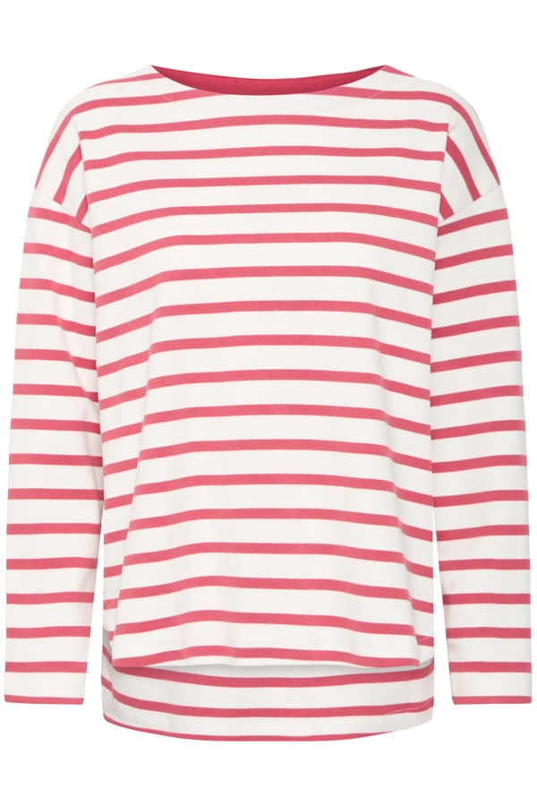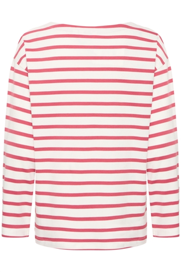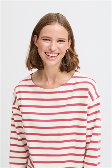 Super lækker B Young Ramsi t shirt med lange ærmer. Stribet t shirt i god kraftig kvalitet. Blegrøde og hvide striber.