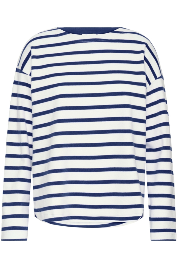Super lækker B Young Ramsi t shirt med lange ærmer. Stribet t shirt i god kraftig kvalitet. Mørkeblå og hvide striber.