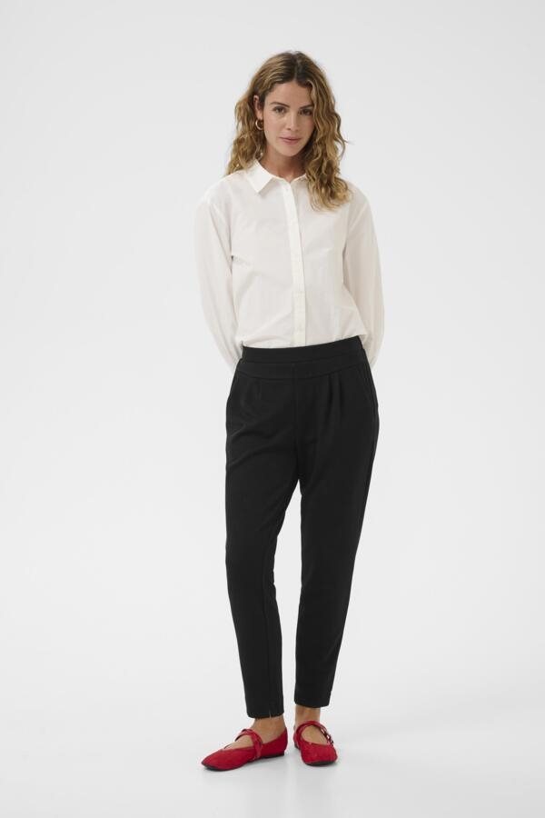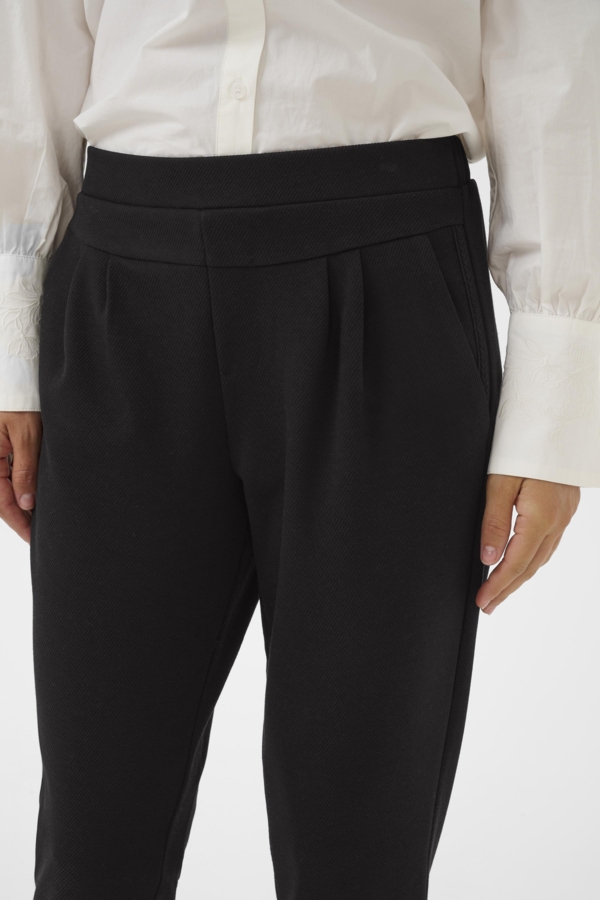 Skønne Cream Annika bukser i sort, med elastik i livet og læg foran.