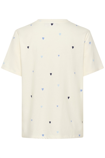 Super sød Saint Tropez Johanna t shirt i råhvid med små blå hjerter.