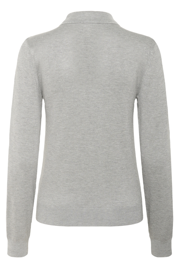 Fed Kaffe Jada polo strik i grå, med fin detalje ved halsen og fine sten i kravekanten.