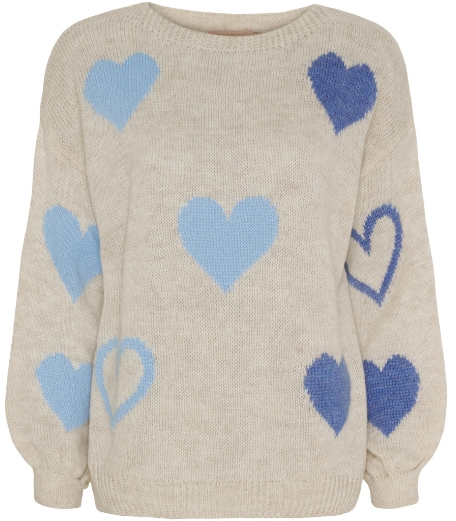 Super skøn Marta du Chateau Amarante strik i lys aqua grøn, med lyserøde og hvide hjerter.