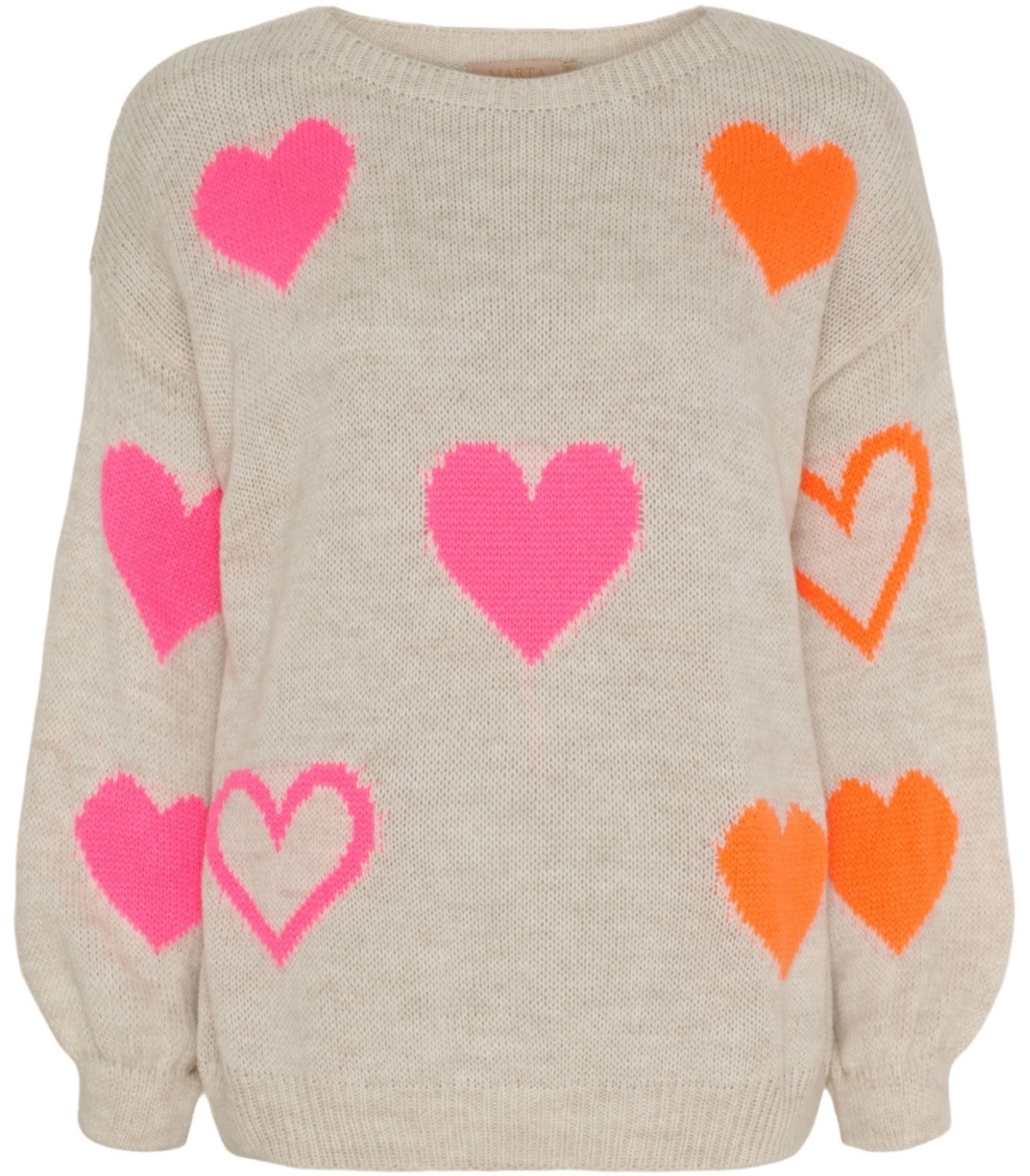 Super skøn Marta du Chateau Amarante strik i beige med pink og orange hjerter.