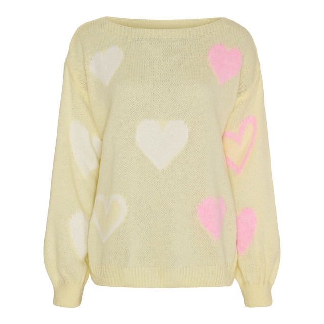 Super skøn Marta du Chateau Amarante strik i lys aqua grøn, med lyserøde og hvide hjerter.