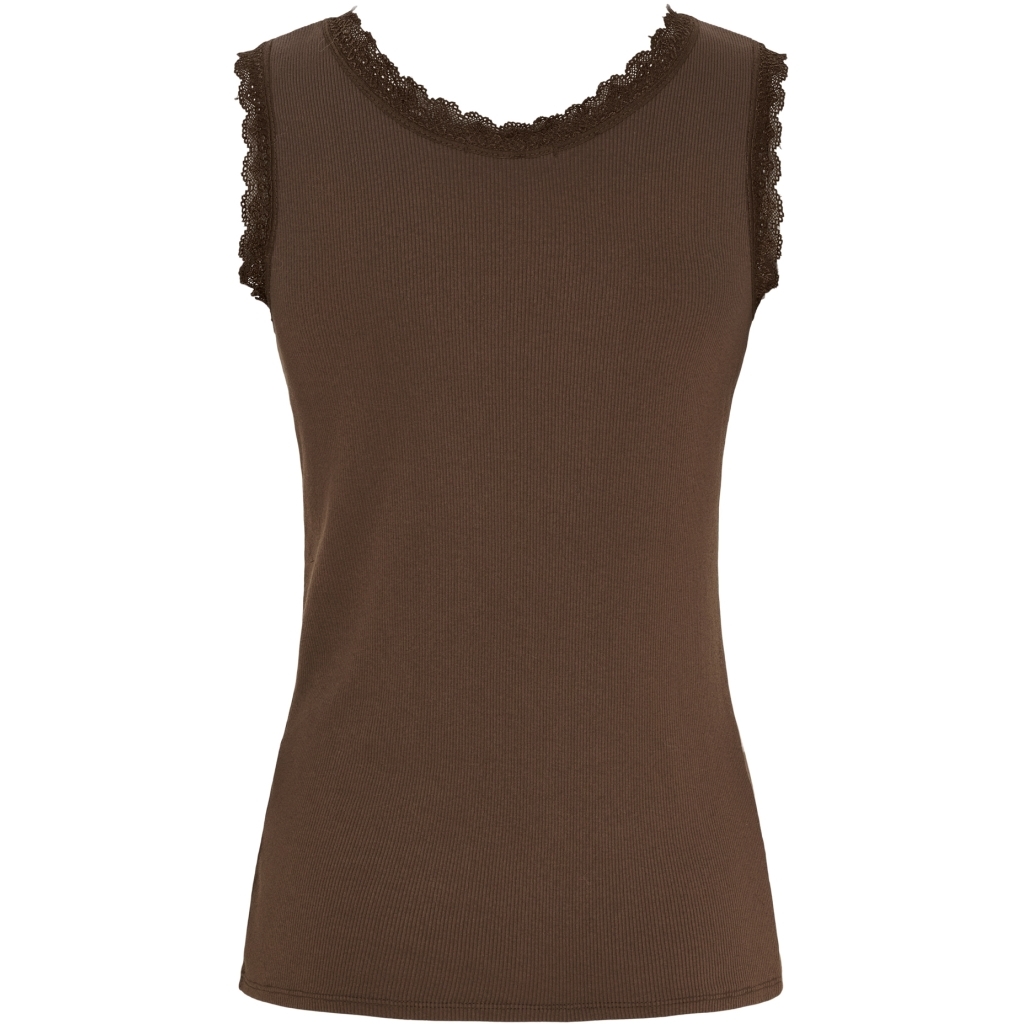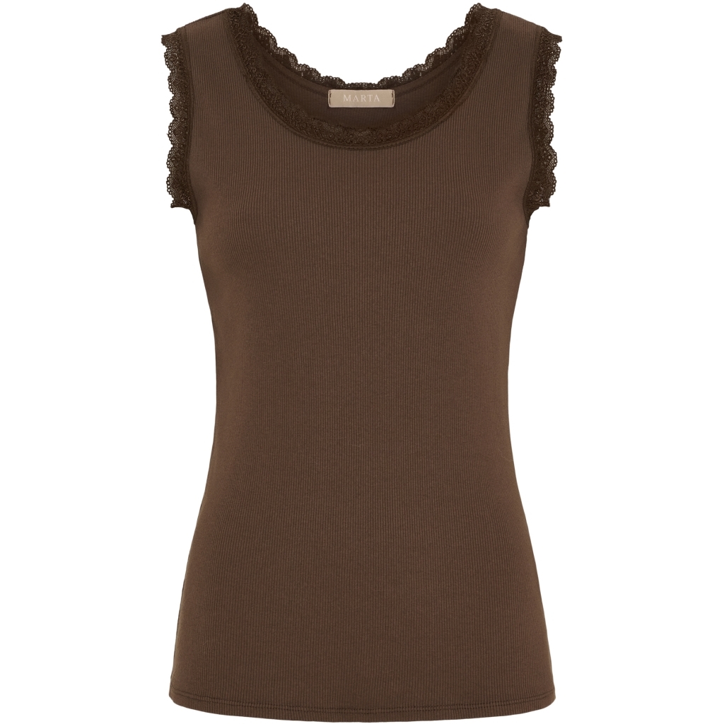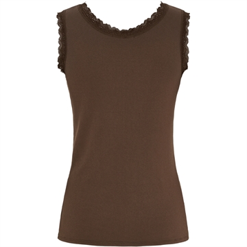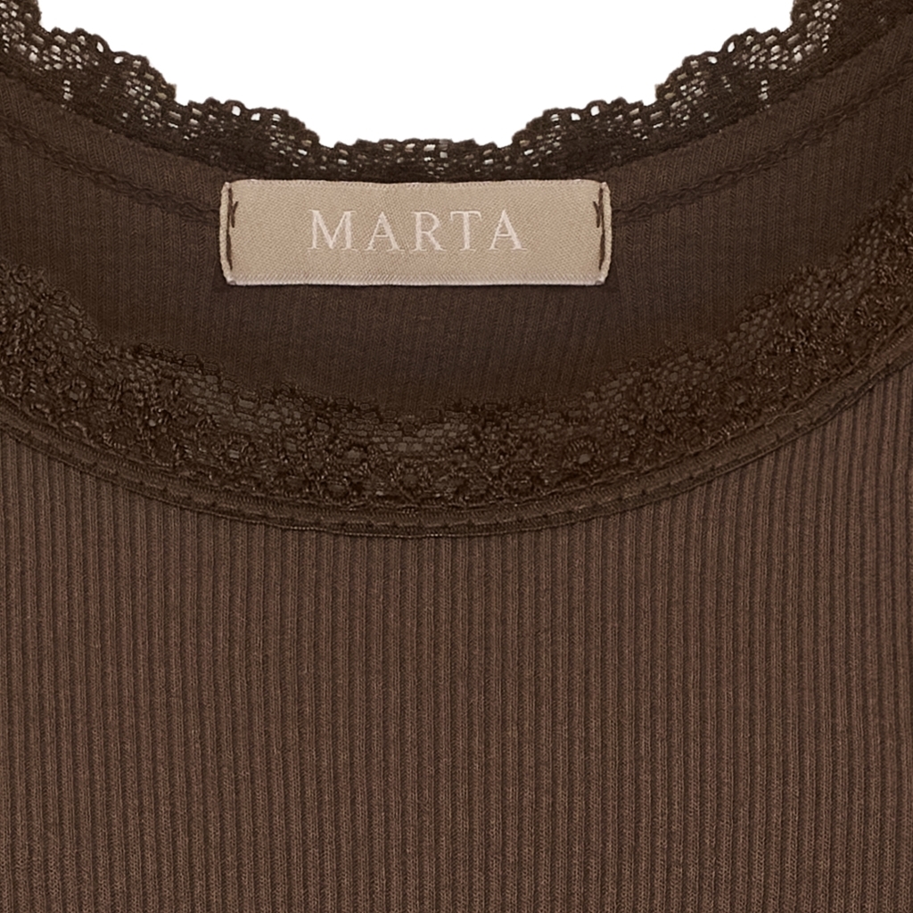 Super lækker Marta Angeline rib top i mørkebrun, med sød blondekant.