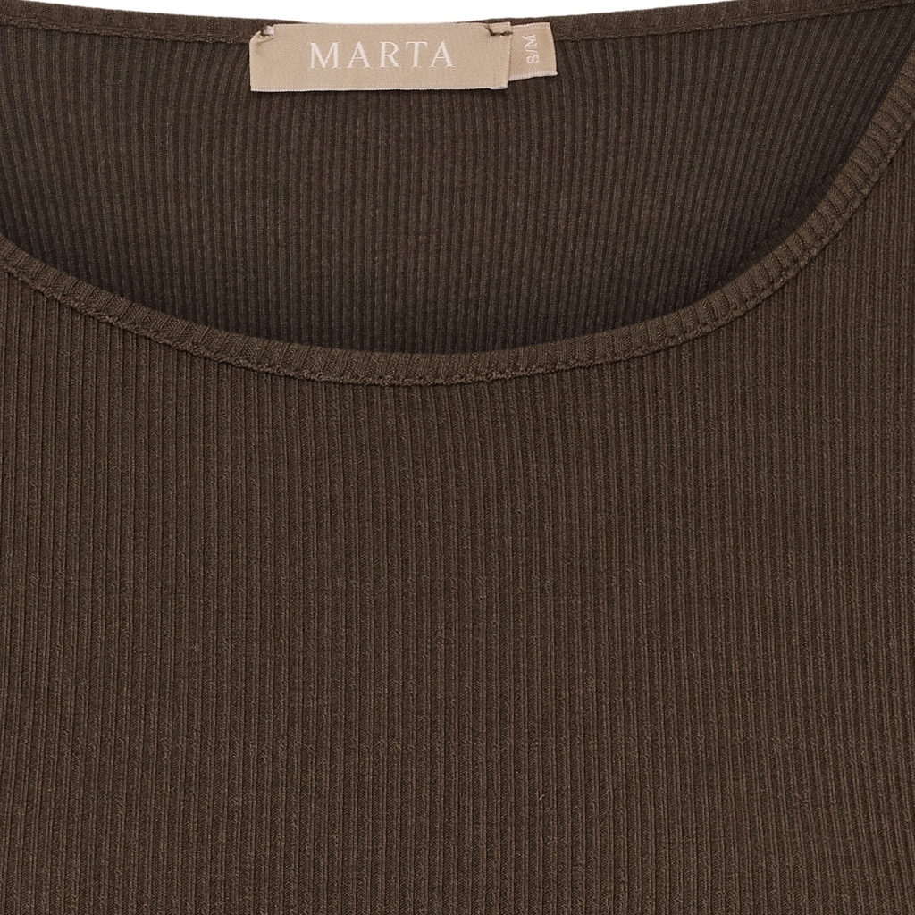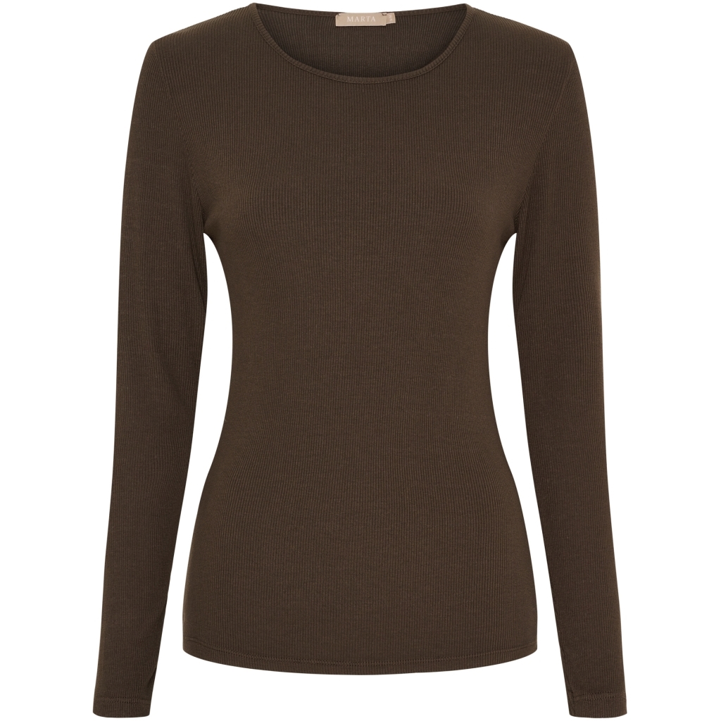 Super sød mørkebrun Marta Aster rib t shirt med lange ærmer. En god basis t shirt, som er anvendelig til mange formål.
