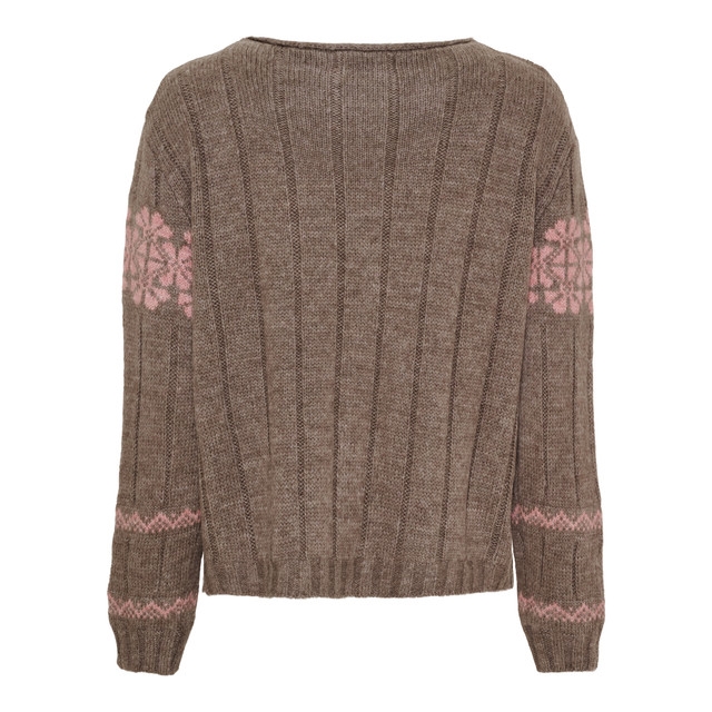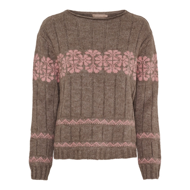 Skøn Marta Du Chateau Bruna strik i mørk sand med flot rosa mønster.