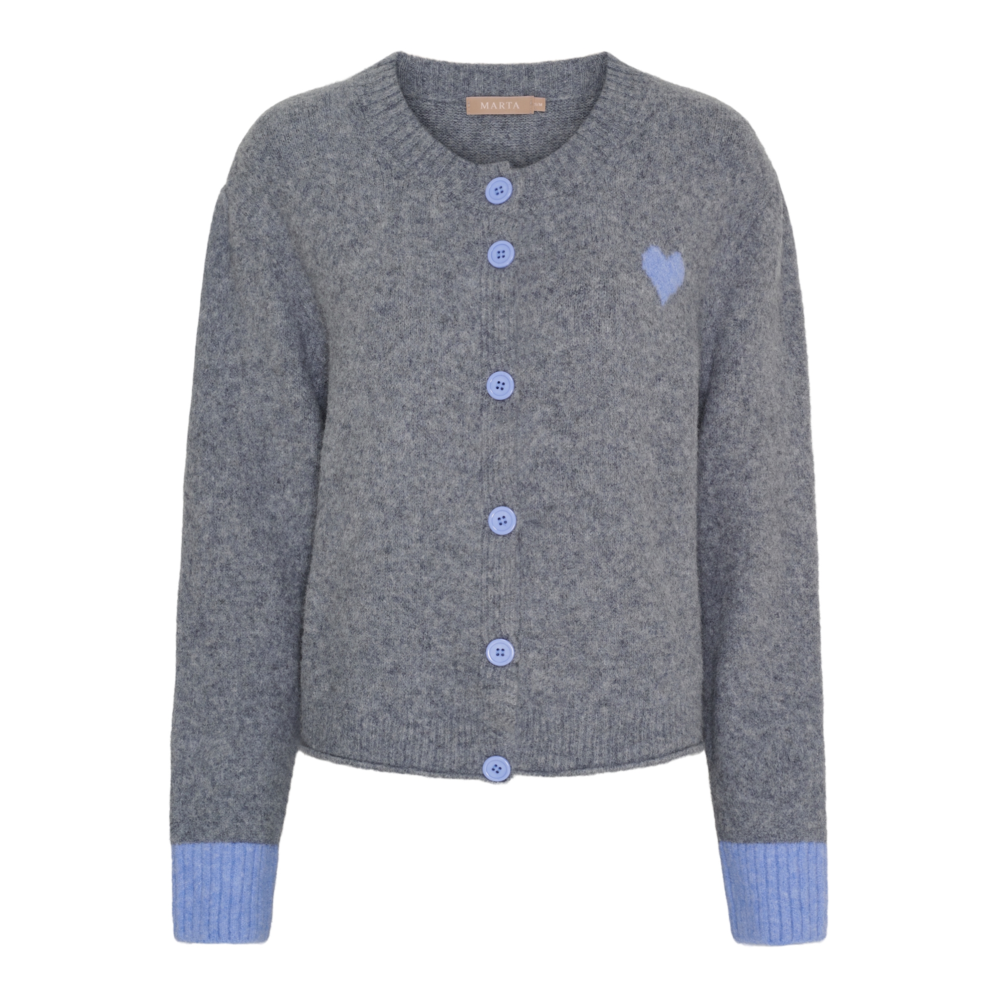 Skøn Marta Du Chateau Calla cardigan i grå med blå detaljer og knapper.