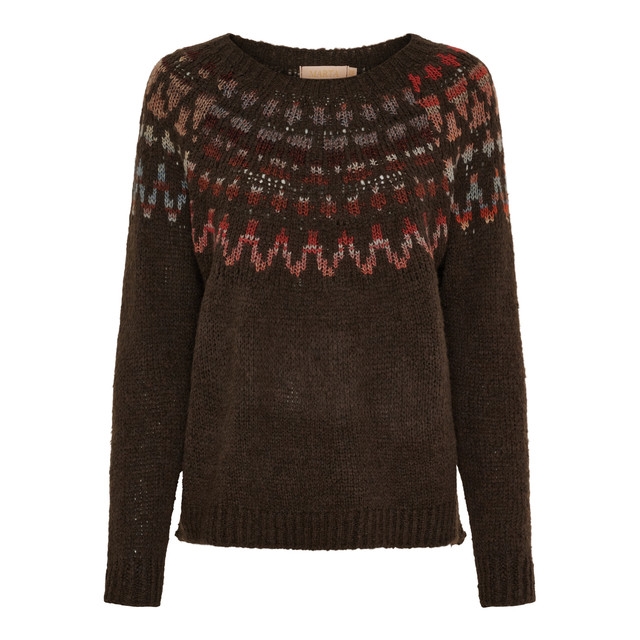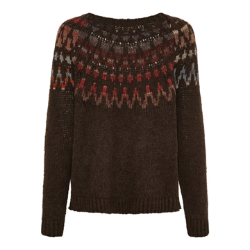 Virkelig skøn Marta Kamelia strik i mørkebrun, med fedt mønster.
