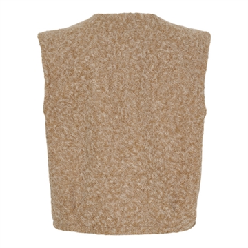 Super fin beige Capella vest fra Marta du Château. Vesten er ærmeløs og åben foran. Perfekt til udover en strik eller langærmet bluse.