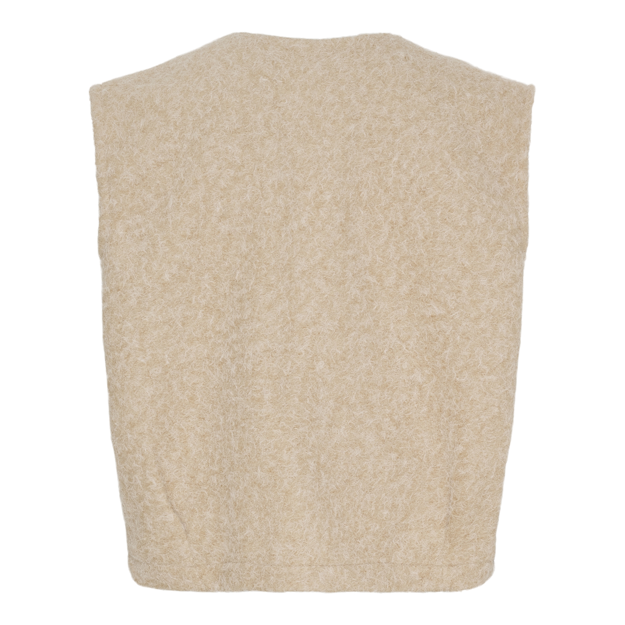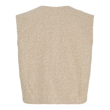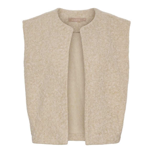 Super fin lys beige Capella vest fra Marta du Château. Vesten er ærmeløs og åben foran. Perfekt til udover en strik eller langærmet bluse.