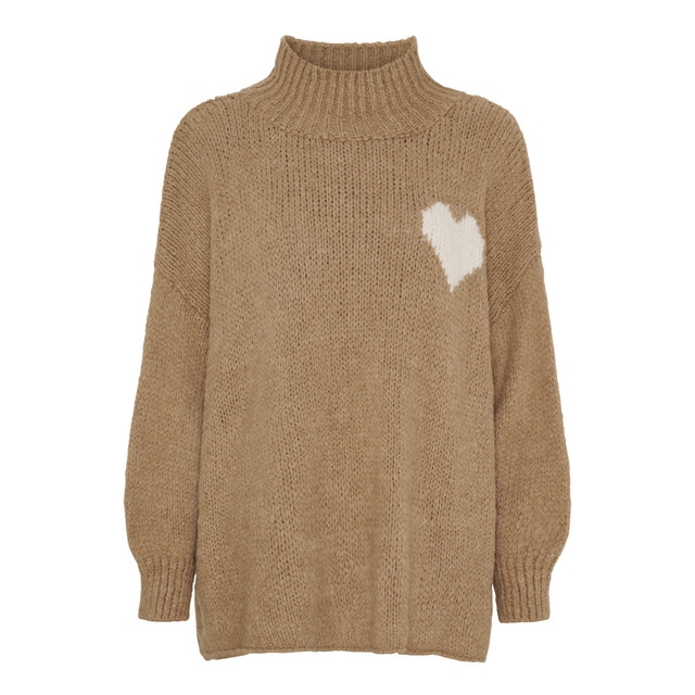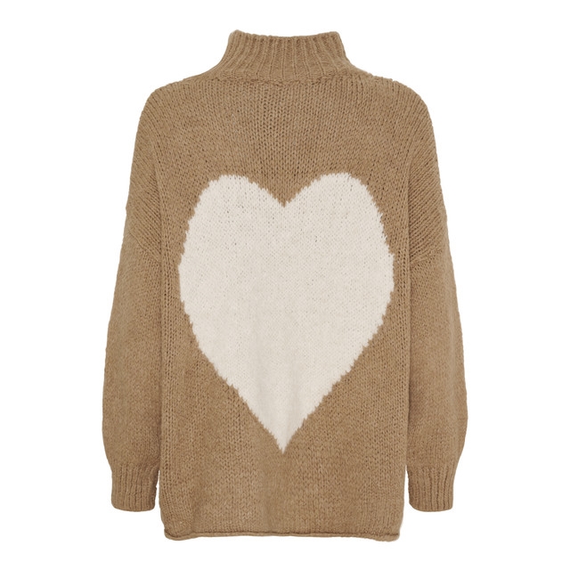 Super lækker Marta Du Chateau Cedar strik i lys camel med hjerte på brystet og kæmpe hjerte på ryggen.