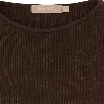 Fantastisk lækker Marta Du Chateau Celia rib strik t shirt, med lange ærmer og glimmer. Mørkebrun med lidt glimmer og rund hals.