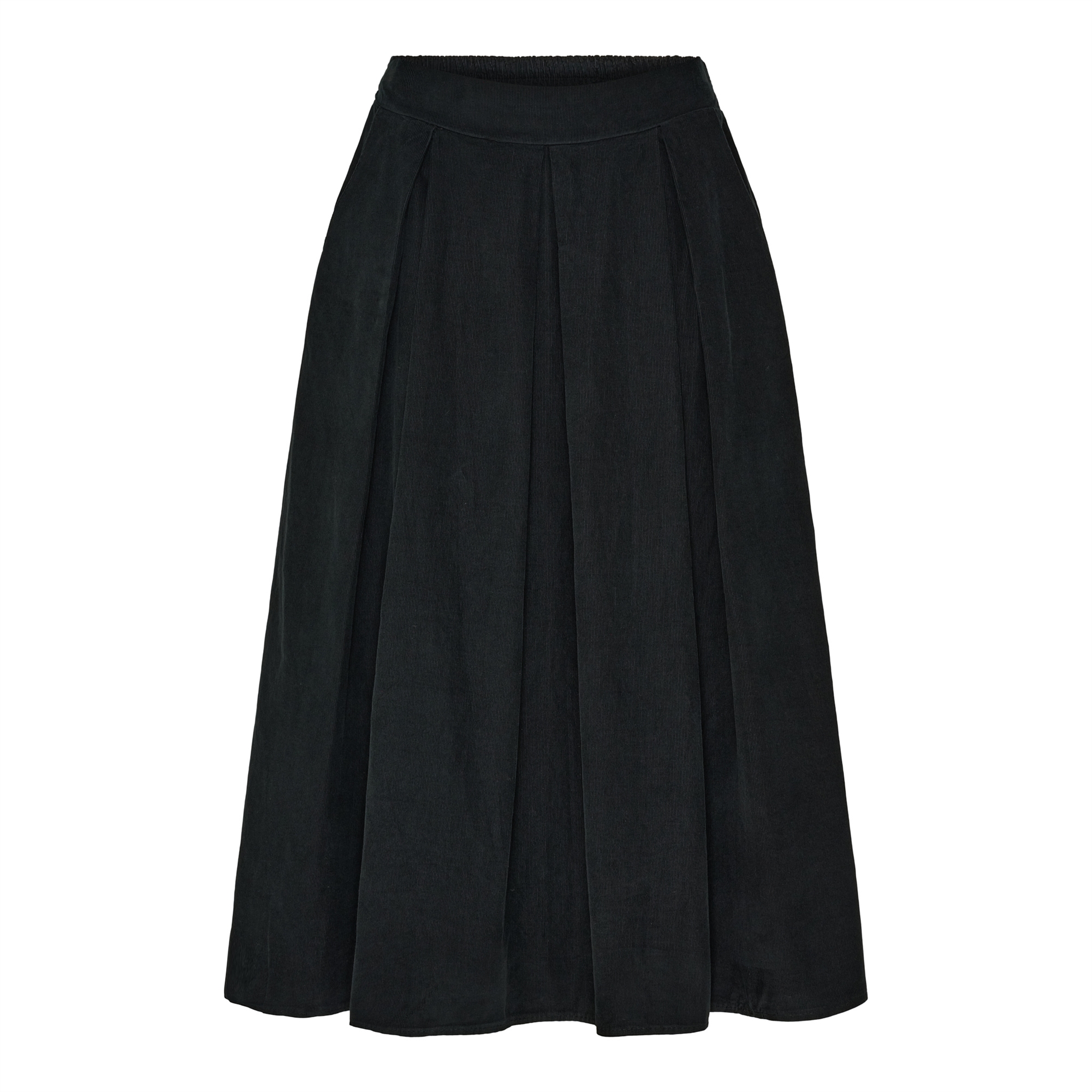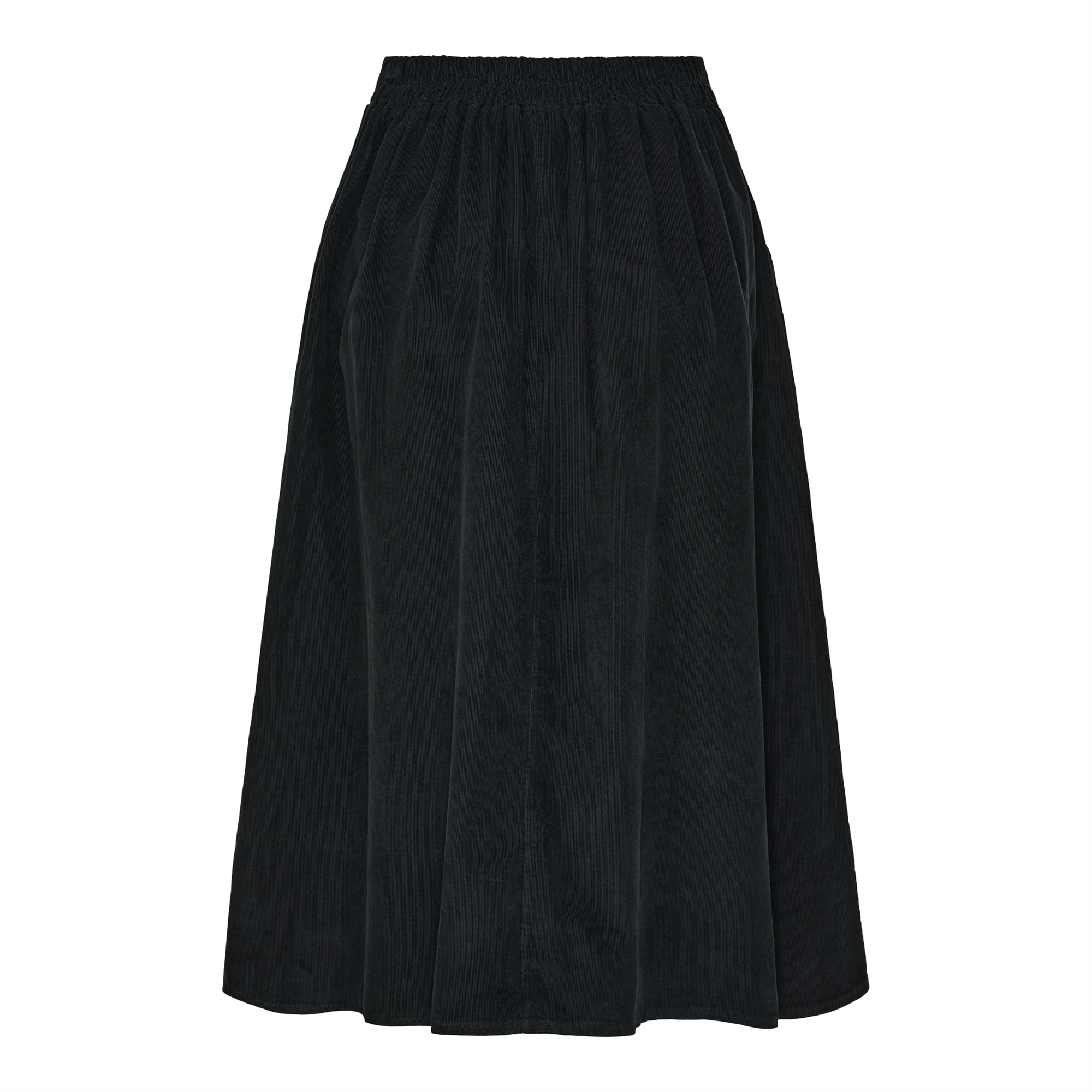 Sort smuk Marta Ciela nederdel i babyfløjl. Læg foran og elastik i livet, skøn både til hverdag og fest.