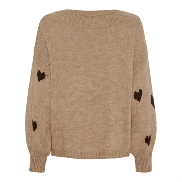 Mega nice Marta Clover strik i beige med små brune hjerter.