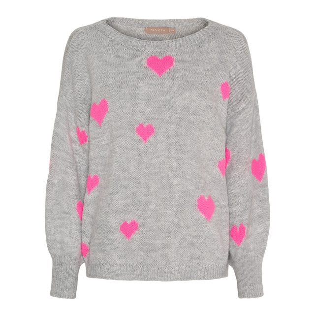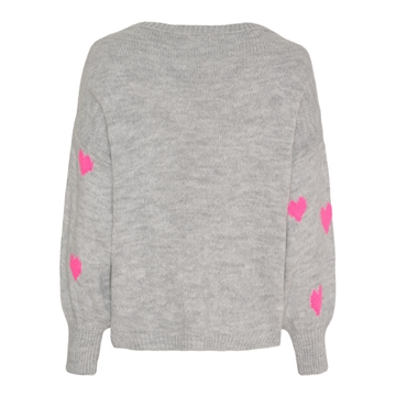 Mega nice Marta Clover strik i grå med små pink hjerter.