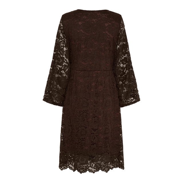 Flot brun blonde kjole med transparante ærmer og v udskæring. Perfekt til den næste fest.