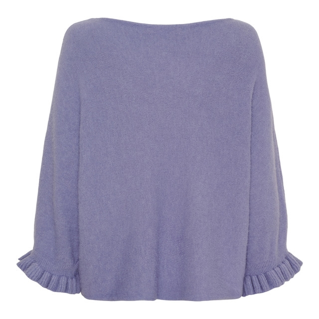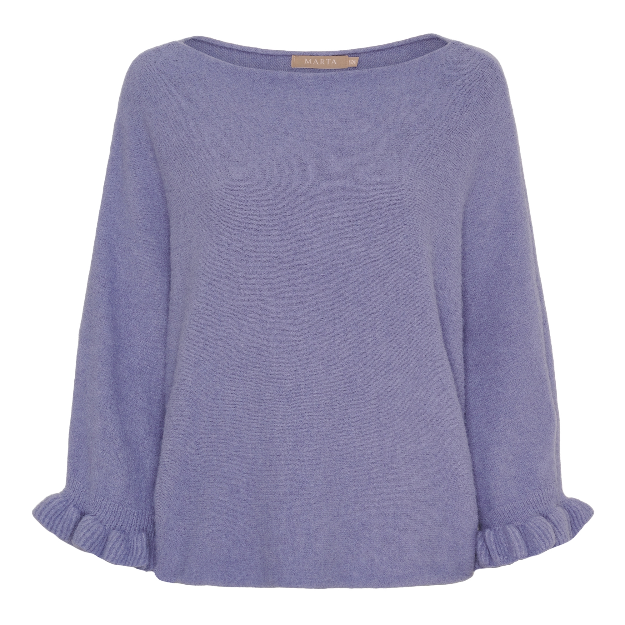 Blød lækker strik med rund hals, lidt korte ærmer der afsluttes med en lille flæse.