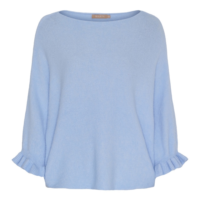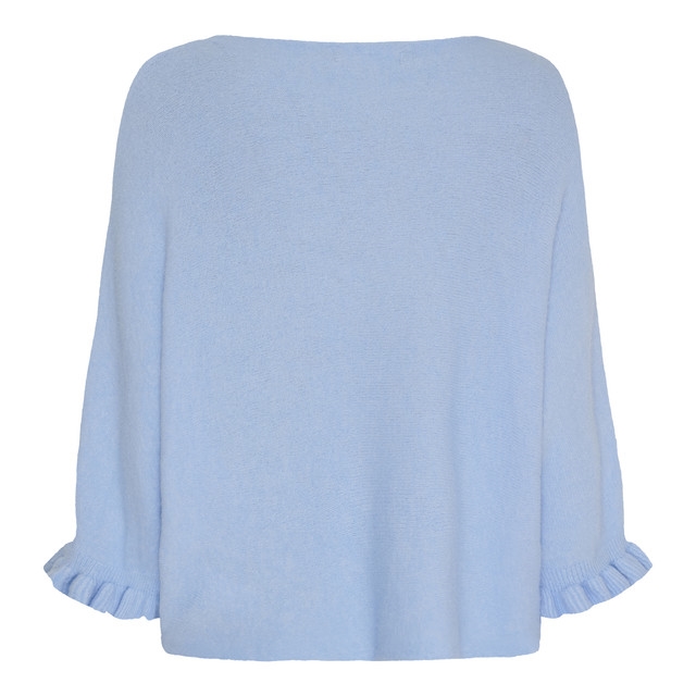 Blød lækker strik med rund hals, lidt korte ærmer der afsluttes med en lille flæse.