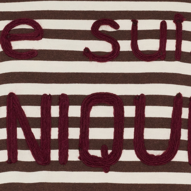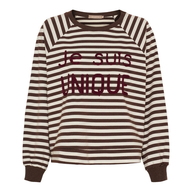 Marta Du Chateau Fenja sweat med brune striber og bordeaux skrift.