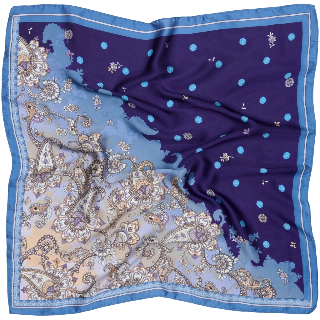 Super fint lille Marta Du Chateau Juline tørklæde i blå nuancer, let og lækkert. Nemt at sætte.