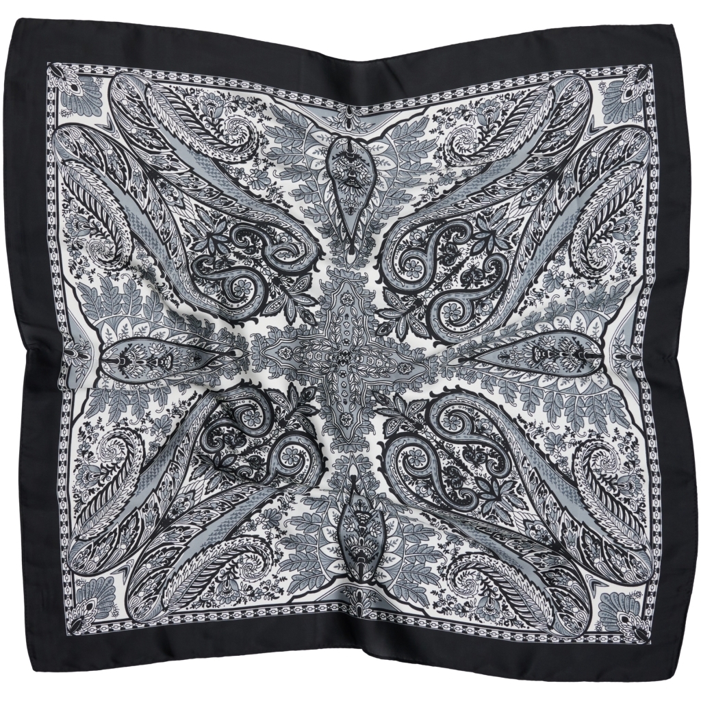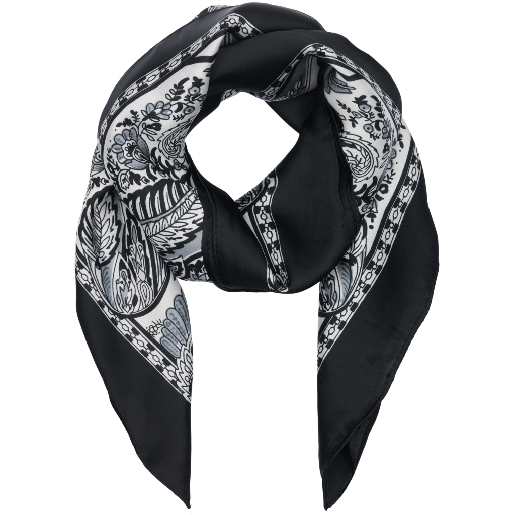 Super fint lille Marta Du Chateau Juline tørklæde i sort og hvidt, let og lækkert. Nemt at sætte.
