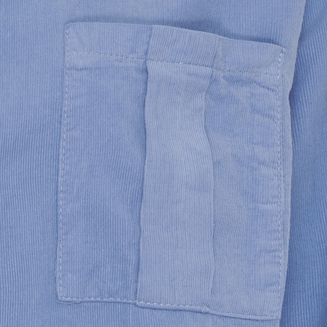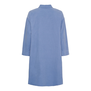 Skøn Marta Du Chateau kjole i lyseblå babyfløjl. Dejlig blød og rummelig model, gennemkanppet og med lommer på brystet.