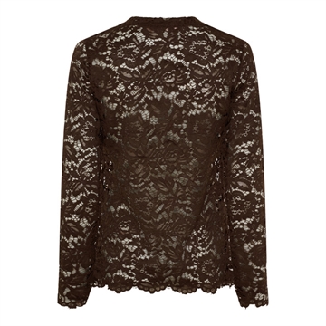 Mørkebrun blonde bluse med rund hals og lange ærmer.