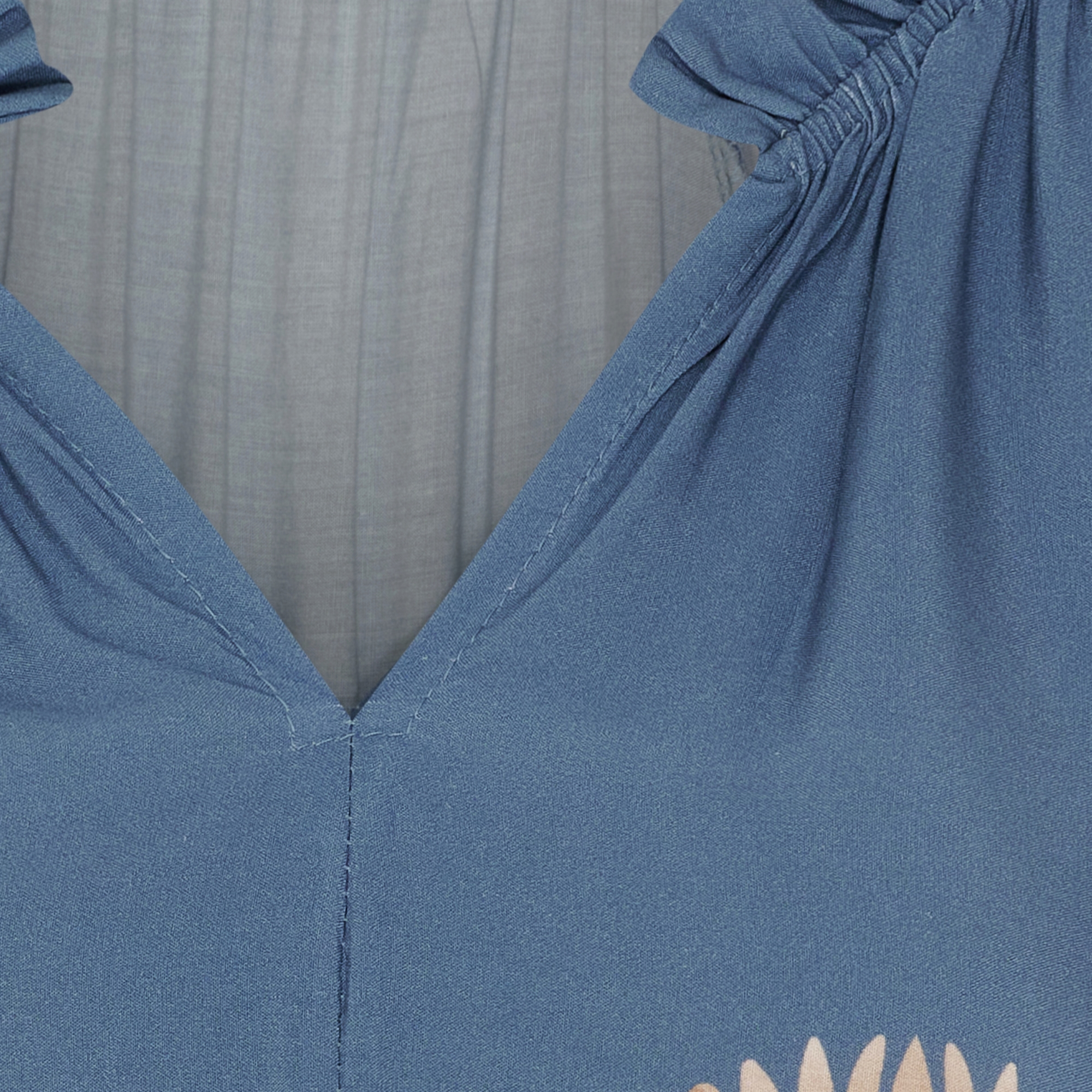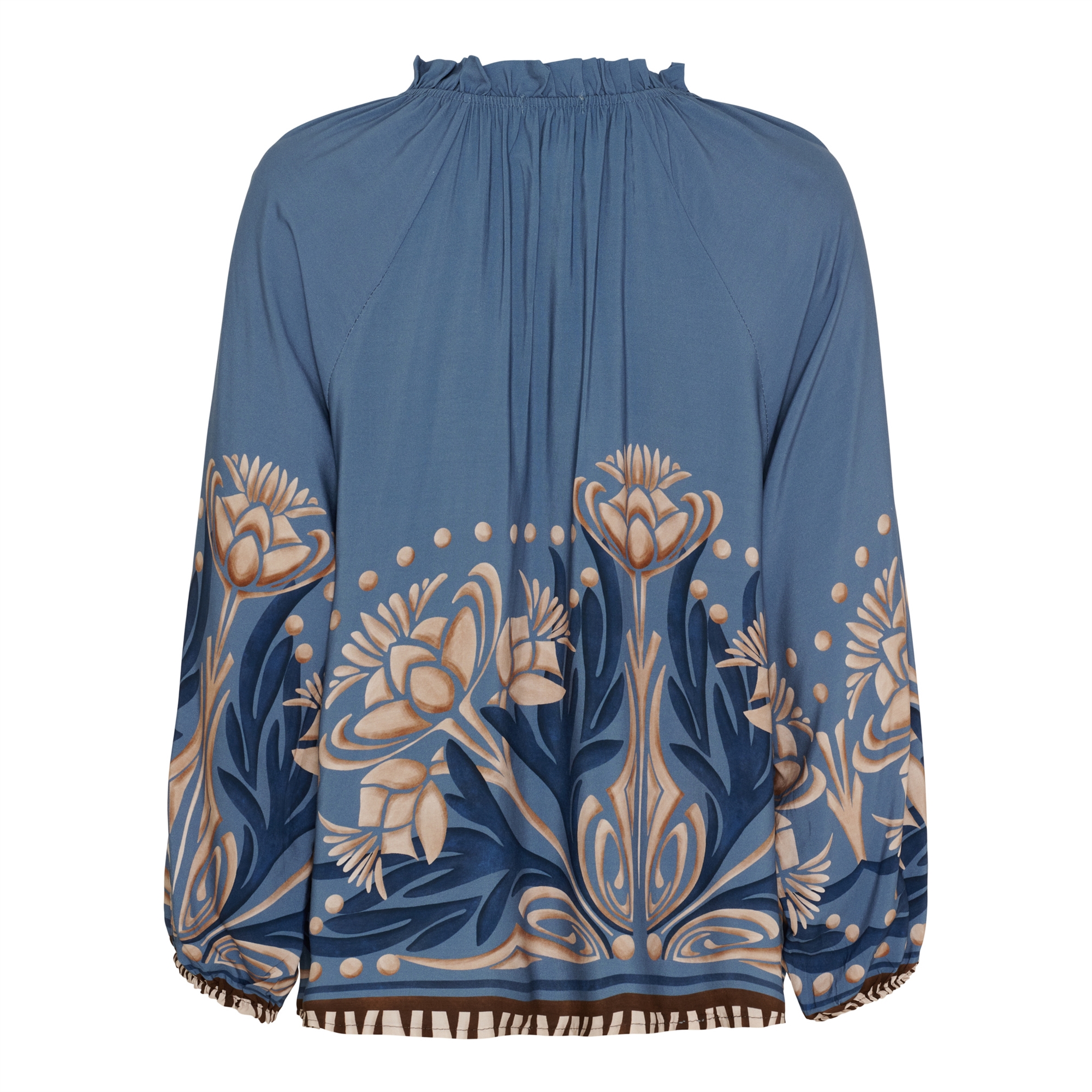 Super smuk Marta Du Chateau Octavia bluse i blå med flotte blomster i beige.