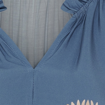 Lange ærmer der afsluttes med elastik. Fin lille flæse ved halsen og v udskæring.
