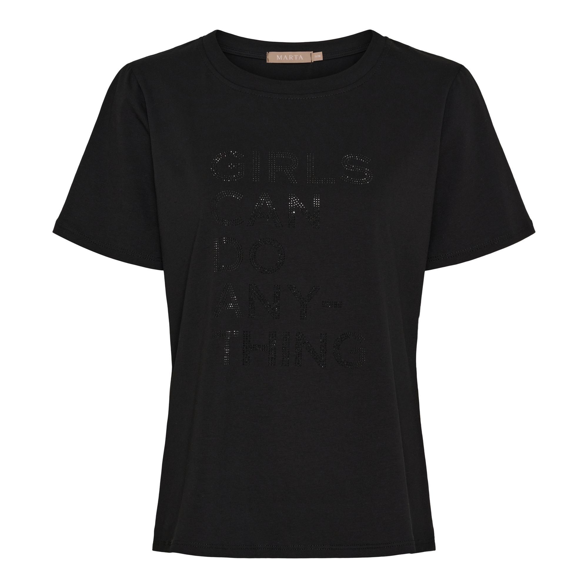 Fed Marta Sunshine t shirt i sort med glimmer tryk på fronten. Rund hals og korte ærmer.