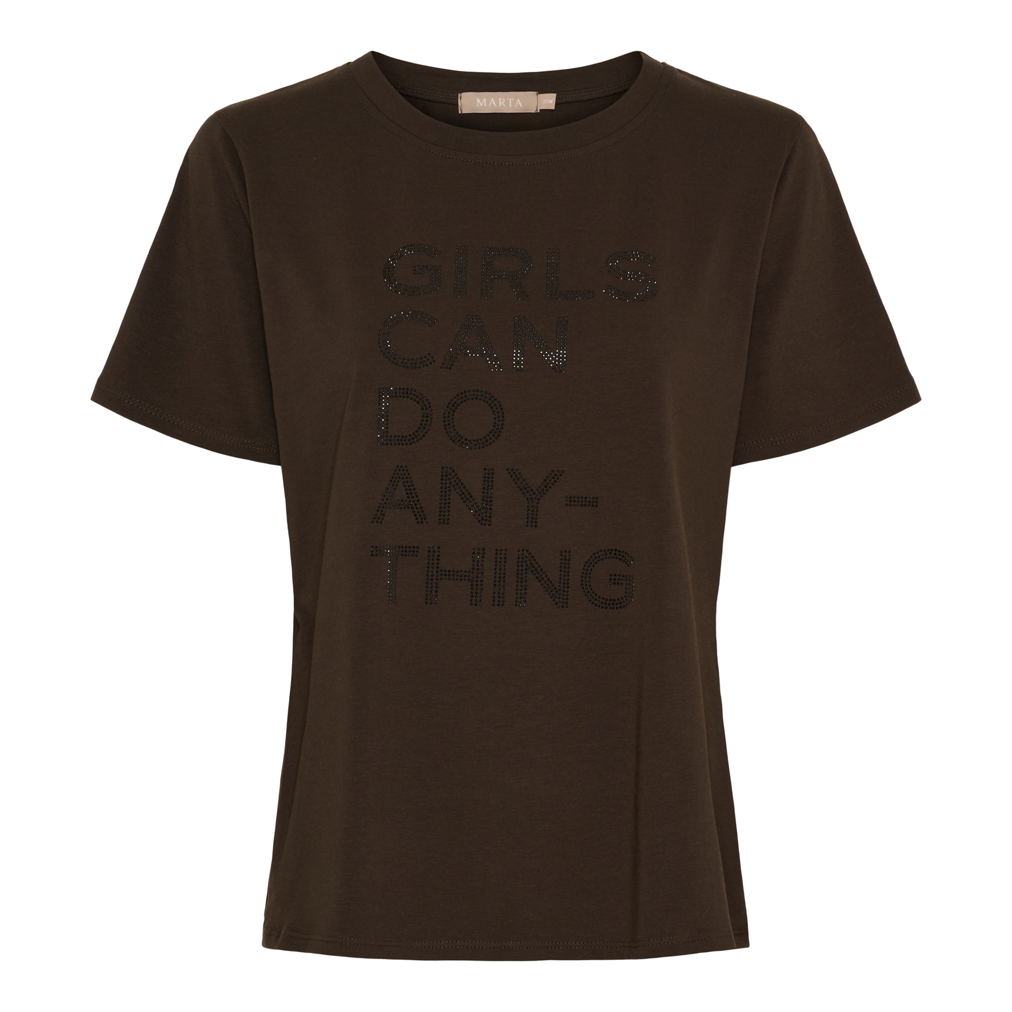 Fed Marta Sunshine t shirt i brun med glimmer tryk på fronten. Rund hals og korte ærmer.