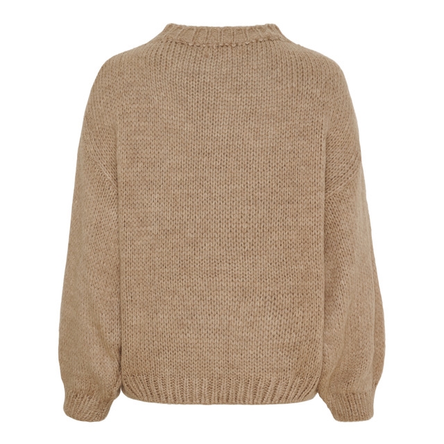 Den fedeste Marta Tulip strik, i lækker nougat farve med brun skrift.