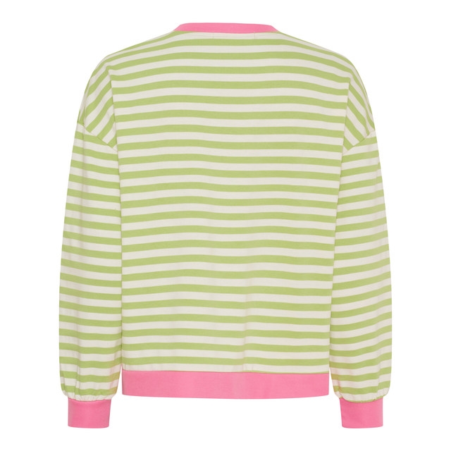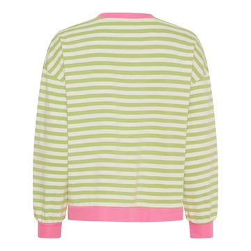 Sød trendy Marta Du Chateau Vilda sweat. Tynd sweat, med grønne og hvide striber, pink detaljer og hjerte.