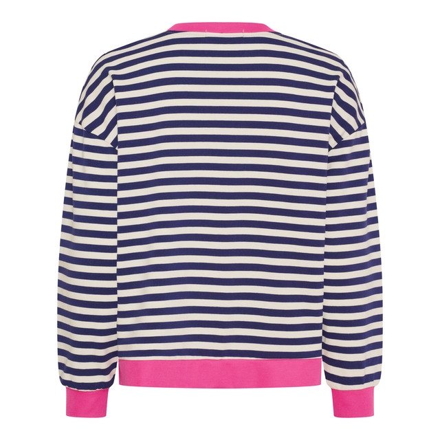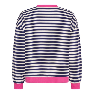 Sød trendy Marta Du Chateau Vilda sweat. Tynd sweat, med blå og hvide striber, pink detaljer og hjerte.