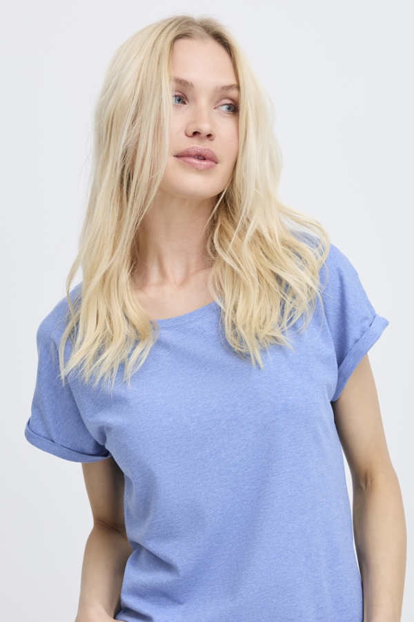 Mellemblå og enkel, virkelig en skøn og blød t shirt.