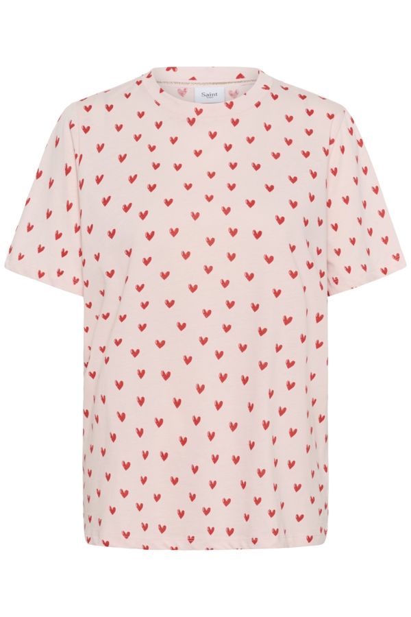 Super sød Saint Tropez Pammu t shirt, i rosa med røde hjerter.