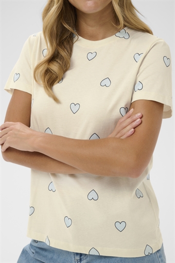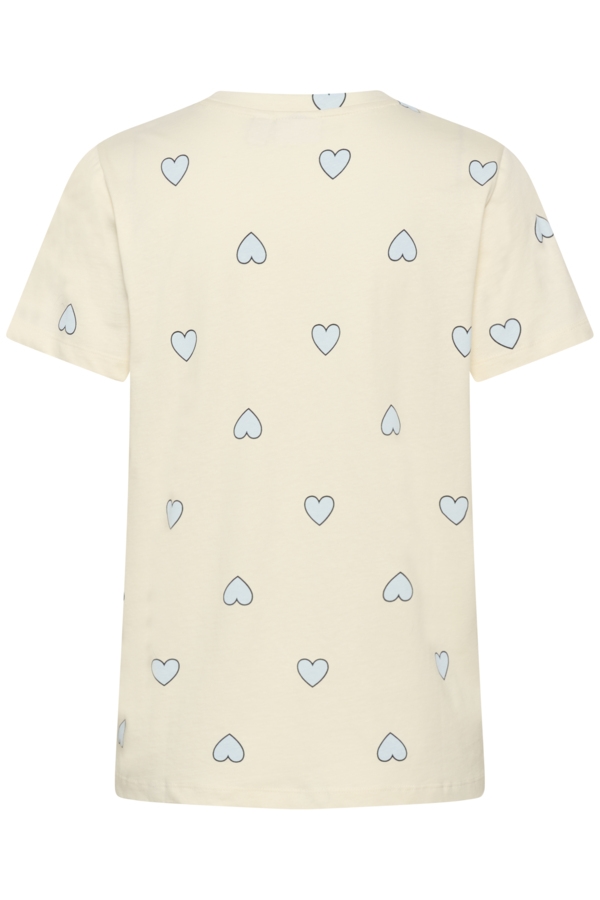 Super sød Saint Tropez Pixilina t shirt i råhvid med små lyseblå hjerter.