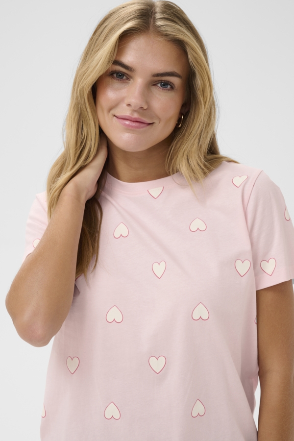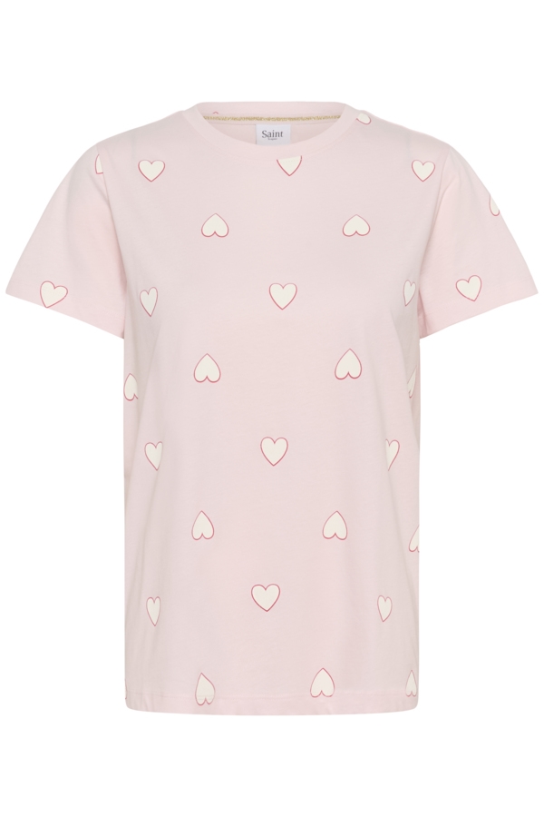 Super sød Saint Tropez Pixilina t shirt i lyserød med små hvide hjerter.