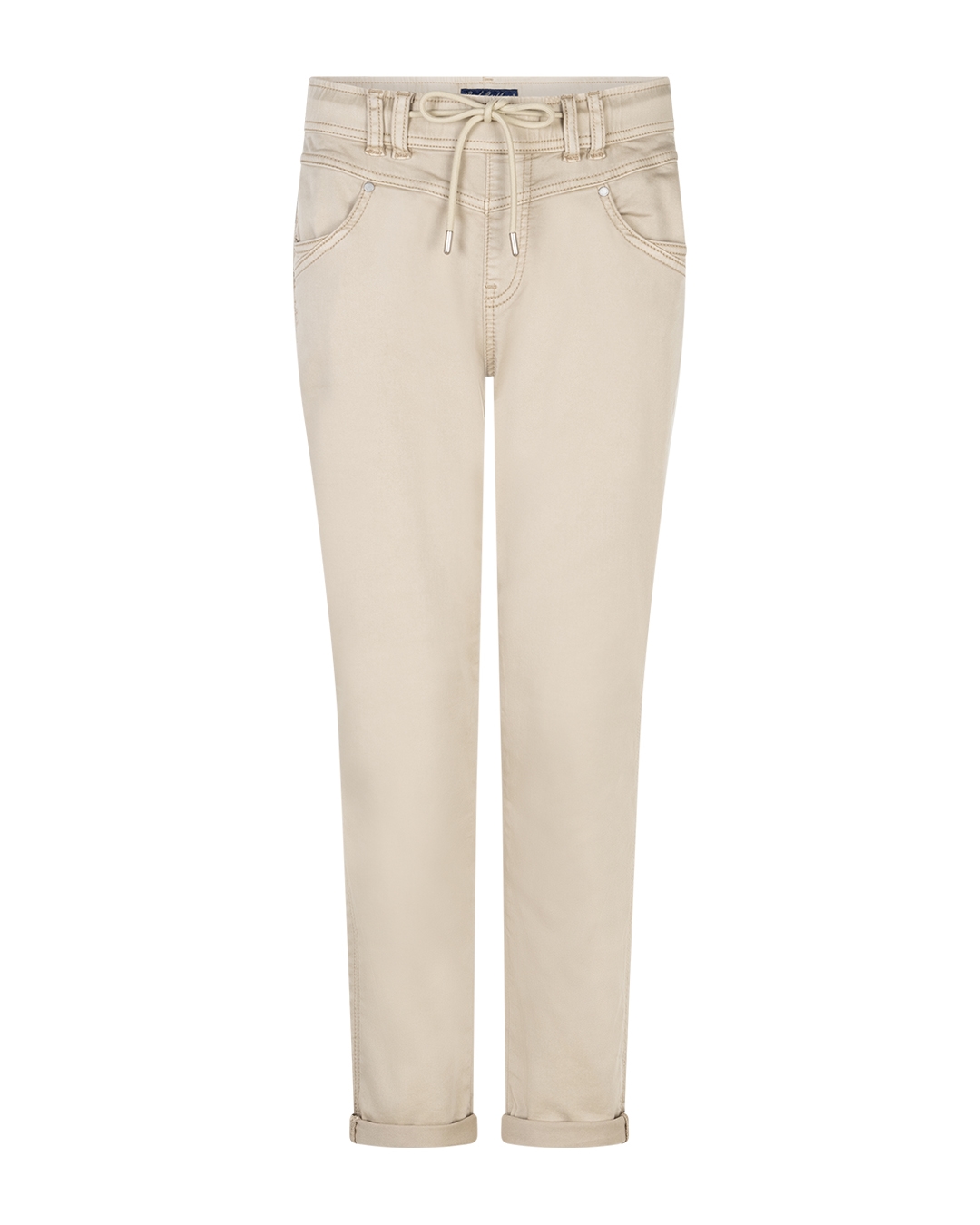 Dejlig høje i livet, med elastik og bæltestropper. Ankellange med lille opslag. En rigtig god buks, der ikke har noget med jogging at gøre trods navnet.